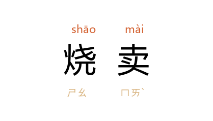 ⒈ 烫面薄皮包馅制成的食品,蒸熟吃。俗称作“烧麦”
