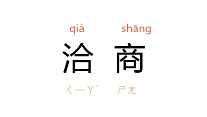 引《孽海花》第二五回:「玨斋听了有理,所以有唐卿这番的洽商。」