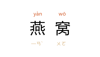 ⒈ 南亚及其邻近岛屿上的几种小雨燕(金丝燕属 Collocalia)的巢,主要由燕子的唾液腺的粘性分泌物经干燥而成,可用来作燕窝汤等。