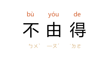 ⒉ 忍不住、不能自制。也作「不由的」、「由不得」。
