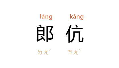 引《西游记》第四七回:“这獃子念动咒语,把头摇了几摇,叫:‘变!’真个变过头来,就也像女孩儿面目;只是肚子胖大,郎伉不像。”清 金人瑞 《癸未秋兴》诗之三:“蚊子秋来大如蜂,衣裳郎亢冠髼鬆。”