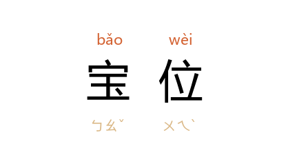 ⒈ 语出《易·系辞下》:“圣人之大宝曰位。”后以“宝位”指帝位。
