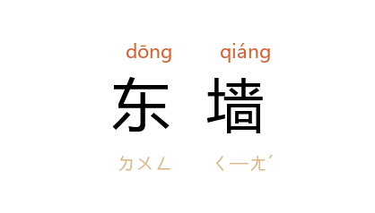 ⒈ 东边的墙垣。参见“东墙窥宋”。