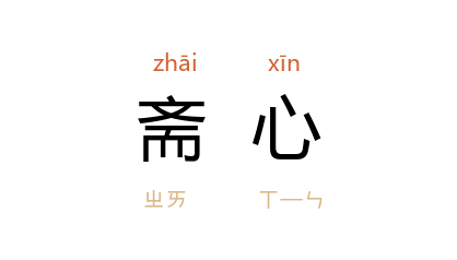 引《列子·黄帝》:「居大庭之馆,斋心服形,三月不亲政事。」唐·王昌龄〈武陵龙兴观黄道士房问易因题〉诗:「斋心问易太阳宫,八卦真形一气中。」