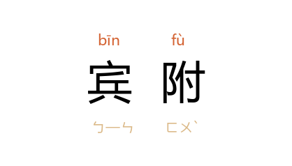 引晋 袁宏 《后汉纪·桓帝纪上》:“匈奴、莎车、乌孙、鲜卑 诸国常不宾附者,闻 膺 威名,莫不畏服。”《陈书·世祖纪》:“山越 深险,皆不宾附, 世祖 分命讨击,悉平之。”《汉书·礼乐志》“既畏兹威,惟慕纯德,附而不骄,正心翊翊” 唐 颜师古 注:“言畏威怀德,皆来宾附,无敢骄怠,尽虔敬。”