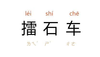 ⒉ 古时一种战具。以车载石,转石下击,杀伤敌人。