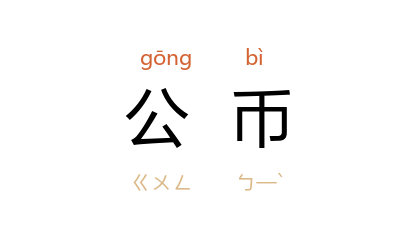 ⒈ 指国家铸造的货币。置公币,谓国家将货币预付给馀粮户作为订购粮食的款项。