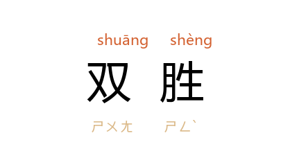 引宋 张端义 《贵耳集》卷下:“绍兴 初, 杨存中 在 建康,诸军之旗,中有双胜交环,谓之二圣环。”清 陈维崧 《齐天乐·立春日柬高谡园》词:“玉臂今宵,料他双胜也慵剪。”闻一多 《诗与批评·剑匣》:“有盘龙、对凤、天马、辟邪底花边,有芝草、玉莲、卍字、双胜底花边。”