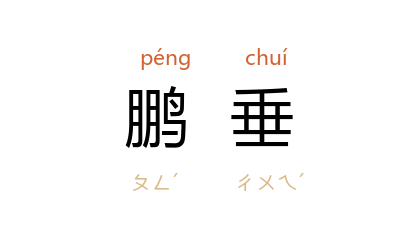 ⒈ 《庄子·逍遥游》:“鹏之背,不知其几千里也:怒而飞,其翼若垂天之云。”后以“鹏垂”比喻天边大片的云彩。