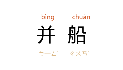 引前蜀 花蕊夫人 《宫词》之二六:“兰桨把来齐拍水,并船相斗湿罗衣。”宋 黄庭坚 《奉答李和甫代简二绝句》之二:“可怜一曲并船笛,説尽故人离别情。”
