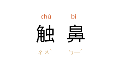 引五代梁·武帝〈净业赋〉:「至如香气馞起,触鼻发识,婉娩追随,氤氲无极。」《西游记·第四十三回》:「你如今为求经,念念在意;怕妖魔,不肯舍身;要斋吃,动舌;喜香甜,触鼻;……招来这六贼纷纷,怎生得西天见佛。」