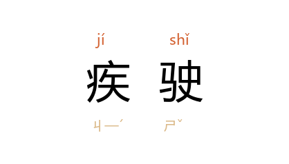 例如:「疾驶而去」。