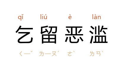 引元·马致远《黄粱梦·第四折》:「那蹇驴儿柳阴下舒著足、乞留恶滥的卧,那汉子去脖项上婆娑没索的摸。」