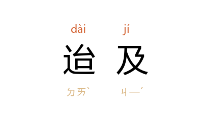 引晋 陆机 《长歌行》:“迨及岁未暮,长歌承我闲。”南朝 宋 刘铄 《拟孟冬寒气至诗》:“迨及凉风起,行见寒林疏。”《二十年目睹之怪现状》第五九回:“这一天,大家都是惊疑不定,草木皆兵;迨及到了晚上,仍然毫无动静。”