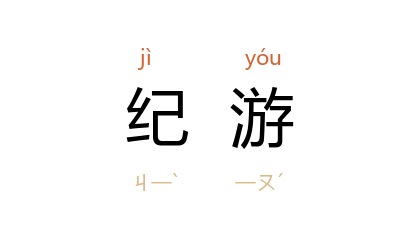 引匡庐、峨眉,山也,则曰纪游;采硫、访碑,务也,则曰日记。”郭沫若 《洪波曲》第十六章二:“但这一次的登山,我却有了一首纪游诗,是在那下山途中勉强凑成的。”