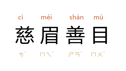 英语kind brows, pleasant eyes (idiom); amiable looking, benign-faced