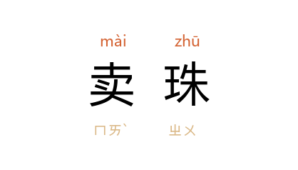 引唐 李白 《古风》之八:“緑幘谁家子,卖珠轻薄儿。”清 陈维崧 《齐天乐·重游水绘园有感》词:“恨极卖珠,缘慳捣药,赢得啼鹃频唤。”