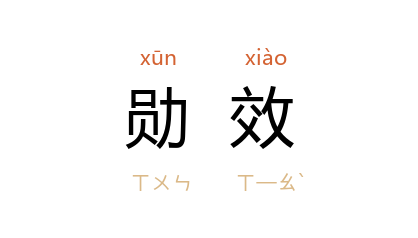 引《晋书·石勒载记下》:“石季龙 自以勋效之重,仗 鄴 为甚,雅无去意。”《北史·裴叔业传》:“宣武 以 颺 勋效未立而卒,其子 烱 不得袭封。”《资治通鉴·唐玄宗天宝十三载》:“臣所部将士讨 奚、契丹 、九姓、 同罗 等,勋效勘多,乞不拘常格,超资加赏。”