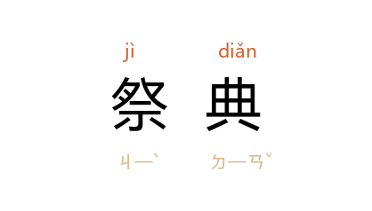 ⒉ 古代祭祀专书亦有以“祭典”命名者,如《隋书·经籍志一》著录 晋 范汪 撰《祭典》三卷。