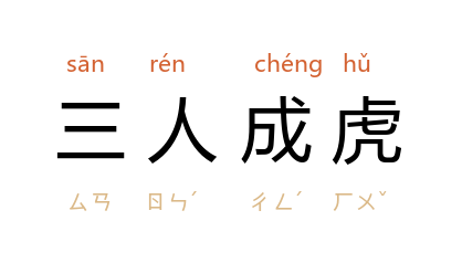 英语three men talking makes a tiger (idiom); repeated rumor becomes a fact