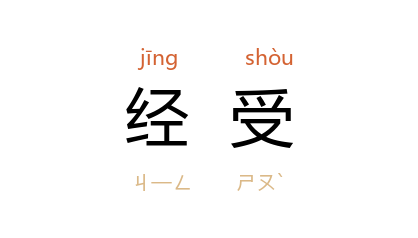 引清 赵怀玉 《苏幕遮》词:“雪将残,波欲縐,春病春愁,寂寞谁经受。”胡采 《<在和平的日子里>序二》:“在战争中,他们经受了最严重的考验。”峻青 《秋色赋·傲霜篇》:“这坚强的老人,是经受得起这个打击的,而且他会变得更加坚强。”