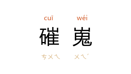 ⒈ 高峻的样子。也作「崔嵬」。
