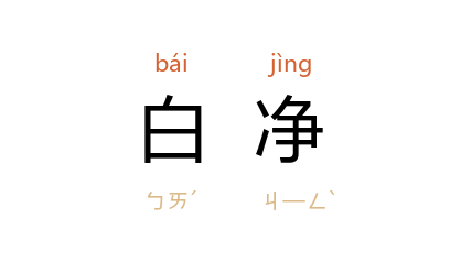 引《红楼梦·第一九回》:「一面看那丫头,虽不标致,倒还白净,些微亦有动人处,羞的脸红耳赤,低首无言。」《文明小史·第三九回》:「果然有这样一个闺女,皮色呢倒也很白净,只是招牙露齿的。」