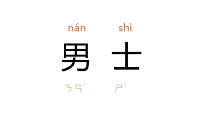 如:「今天晚会上,女士雍容华贵,男士彬彬有礼。」