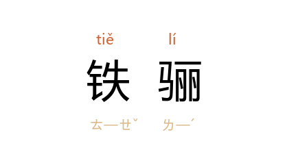 引《礼记·月令》:“﹝仲冬之月﹞天子居玄堂左个,乘玄路,驾铁驪,载玄旆,衣黑衣,服玄玉。”郑玄 注:“铁驪,马色黑如铁者也。”北周 庾信 《三月三日华林园马射赋》:“繁弱振地,铁驪蹋空。”唐 杜甫 《泥功山》诗:“白马为铁驪,小儿成老翁。”