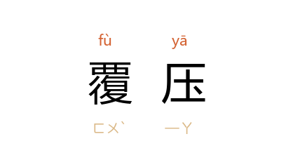 引宋 范成大 《吴船录》卷下:“有 秭归、怀忠 二小堂,前后山既高且近,堂堂廩廩,迫而临之,如欲覆压。”清 蒲松龄 《聊斋志异·妖术》:“有物推窗櫺,房壁震摇,其势欲倾。公惧覆压,计不如出而鬦,遂划然脱扃,奔而出。”