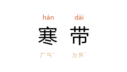 ⒈ 北极圈以北和南极圈以南的地带。北极圈以北叫北寒带,南极圈以南叫南寒带。寒带地区气候寒冷,最暖的月份平均气温也在10°C以下。