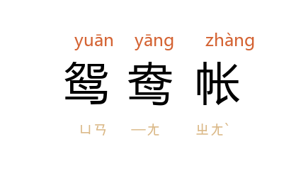 亦省作“鸳帐”。 宋 柳永 《隔帘听》词:“咫尺凤衾鸳帐,欲去无因到。”