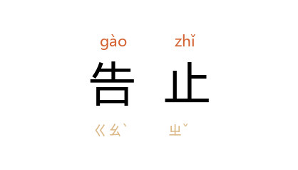 引《二刻拍案惊奇》卷十四:“酒行数过, 县君 不等宣教告止,自立起身道:‘官人慢坐,奴家家无夫主,不便久陪,告罪则箇。’”《天雨花》第四回:“维明 已不胜酒力,老夫人犹自劝频频,御史告止不能饮。”