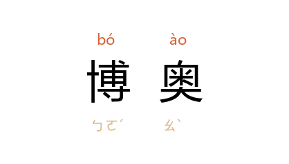 引唐 张鷟 《朝野佥载》卷六:“但爱其才学博奥,以此恋恋不能去。”明 谢肇淛 《五杂俎·人部四》:“杜亮 爱 颖士 之博奥, 银鹿 佐 鲁公 以忠贞。”清 俞樾 《茶香室续钞·文三郎夫妇》:“留书千言,文词博奥,自叙悲愤,援据古今。”