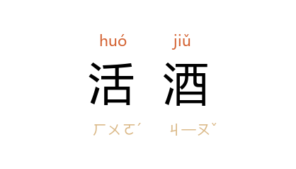 鲁迅 《集外集拾遗补编·戛剑生杂记》:“试烧酒法,以缸一只猛注酒于中,视其上面浮花,顷刻迸散净尽者为活酒,味佳,花浮水面不动者为死酒,味减。”