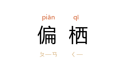 ⒈ 谓独居。晋陆机《拟青青河畔草》诗:“良人游不归,偏栖独只翼。”栖,亦作“栖”。《南史·孝义传下·卫敬瑜妻王氏》:“所住户有燕巢,常双飞来去,后忽孤飞,女感其偏栖,乃以缕系脚为志。”后也称孀居为“偏栖”。
