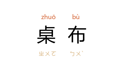 ⒈ 铺盖在桌面上,可保护及装饰桌子的布。多用布或塑胶等质料制成。