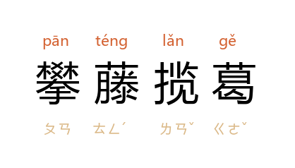 ⒈ 形容道路崎岖难行,必须借助攀爬的力量才能前进。也作「攀藤附葛」。
