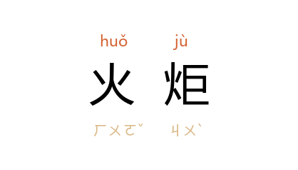 ⒈ 火把。由含树脂的木材或拧成束的稻草或绳子作成,通常手持用于照明。