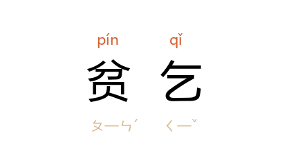 引汉 袁康 《越绝书·计倪内经》:“越王 曰:‘善。今岁比熟,尚有贫乞者,何也?’”《平妖传》第七回:“明日早起,打扮个贫乞老道姑的模样,下山到 华阴县 前。”