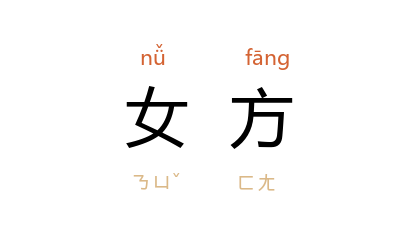 ⒈ 女的方面(多用于有关婚事的场合)