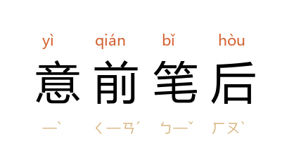 明 丰坊 《笔诀》:“意前笔后者,熟玩古帖,于字形大小、偃仰、平直、疏密、纤穠,藴藉于心,临纸瞑然,豫想其法,随物赋形,各得其理。”
