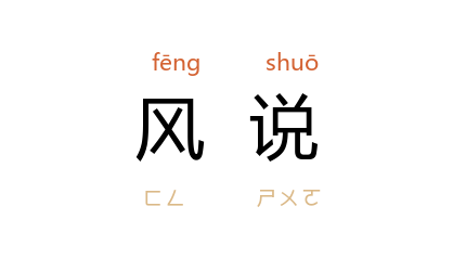 引叶圣陶 《倪焕之》十九:“于是工人罢工、商人罢市的事情陆续发生,而执掌交通的铁路工人也有联合罢工的风说。”郁达夫 《出奔》:“搜寻到了傍晚,眼见得老尼有私藏的风说是假的了。”