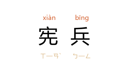 ⒈ 国军兵科之一。具有政治、战斗、警察诸性能,主掌军事警察,并依法令执行司法警察任务,以警卫领袖安全,维护军队安全,确保国家安全为使命。