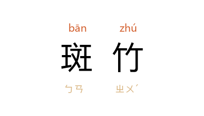 ⒈ 植物名。皮有紫黑色的斑纹,茎可制成装饰品、手杖、笔杆等。相传舜死后,其二妃娥皇、女英因思帝伤痛,泪沾湘江畔上的竹子,使竹尽成斑,故称为「斑竹」。