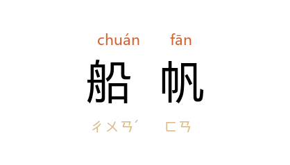 ⒈ 利用竖立的船桅所张的大布幔。为借用风力,使船前进的设备。