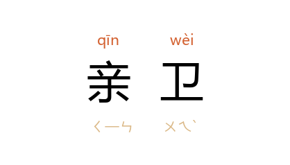 ⒈ 官名。皇帝的侍卫。 隋 始置,与勋卫、翊卫并称三卫。 唐 宋 因之,并置亲卫之府。 明 以后不设。参阅《续通典·职官十》。