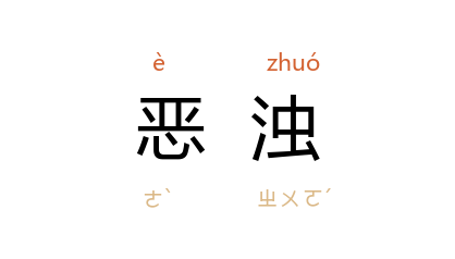 引清 蒲松龄 《聊斋志异·成仙》:“吾厌见恶浊,请还待君於此,如过晡不来,予自去。”孙中山 《军人精神教育》:“吾人生在恶浊世界中,欲打破此旧世界,剷除一切烦恼,以求新世界之出现,则必有高尚思想。”茅盾 《子夜》七:“空气恶浊到叫人脑昏目赤。”
