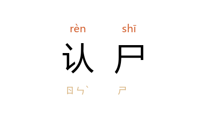 引《初刻拍案惊奇》卷十一:“且一面收监,待有了认尸的,定罪发落。”《三侠五义》第七六回:“临殯葬时,学生给他整理衣服,见他胸前有玉莲花一枝,心中一想,何不将此物留下,以为将来认尸之证?”
