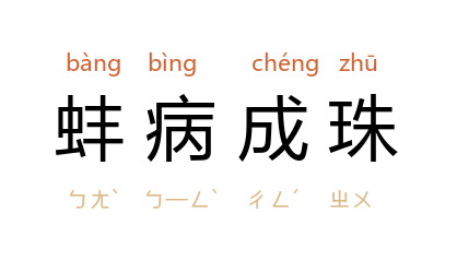 引《淮南子·说林训》:“明月之珠,蛖之病而我之利。”南朝 梁 刘勰 《文心雕龙·才略》:“敬通(冯衍 )雅好辞説,而坎壈盛世,显志自序,亦蚌病成珠矣。”高燮 《题蔡哲夫所绘沉孝则<冰雪庐图>即步哲夫韵》:“嗟哉蚌病乃生珠,诗渐可读消雄图。”